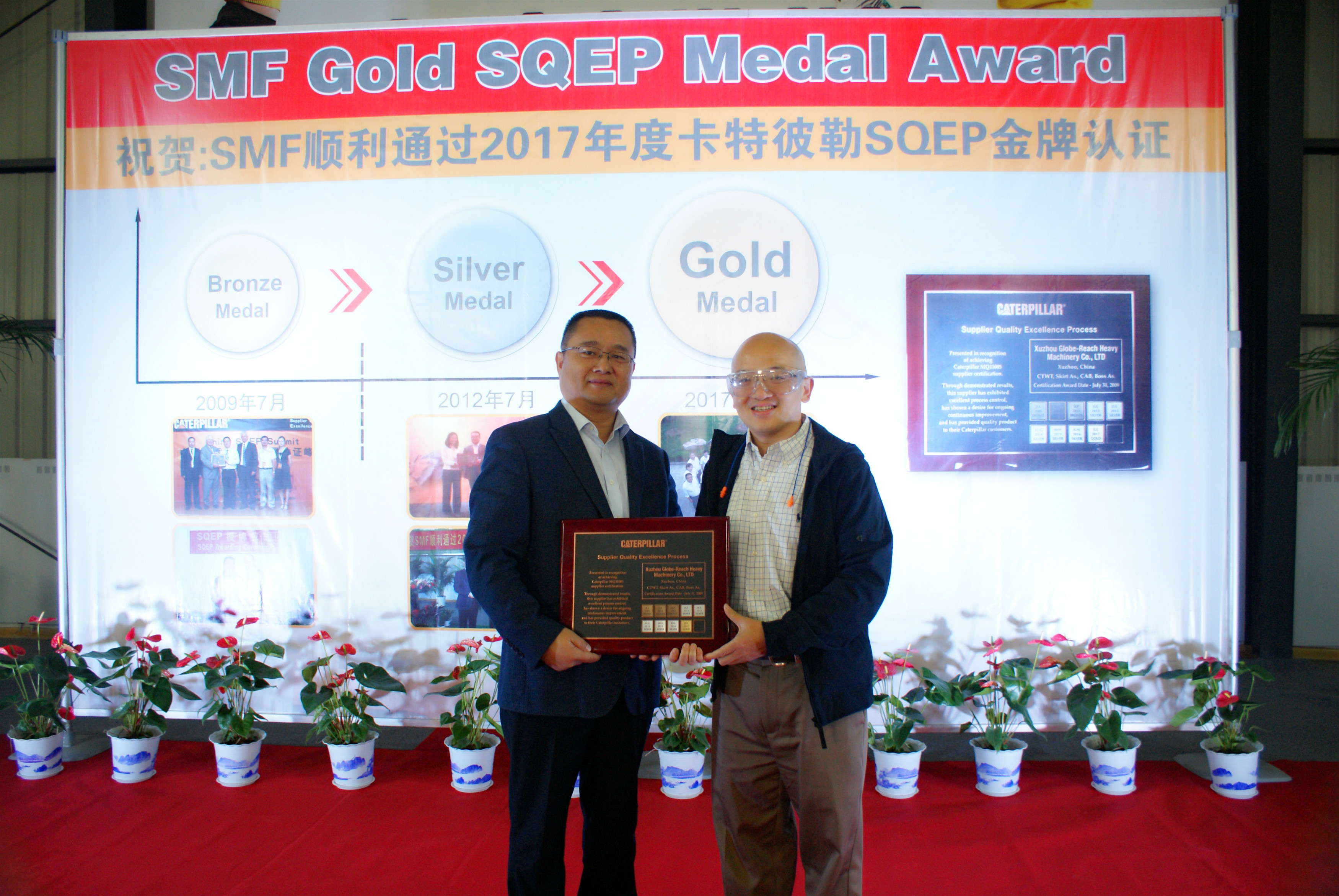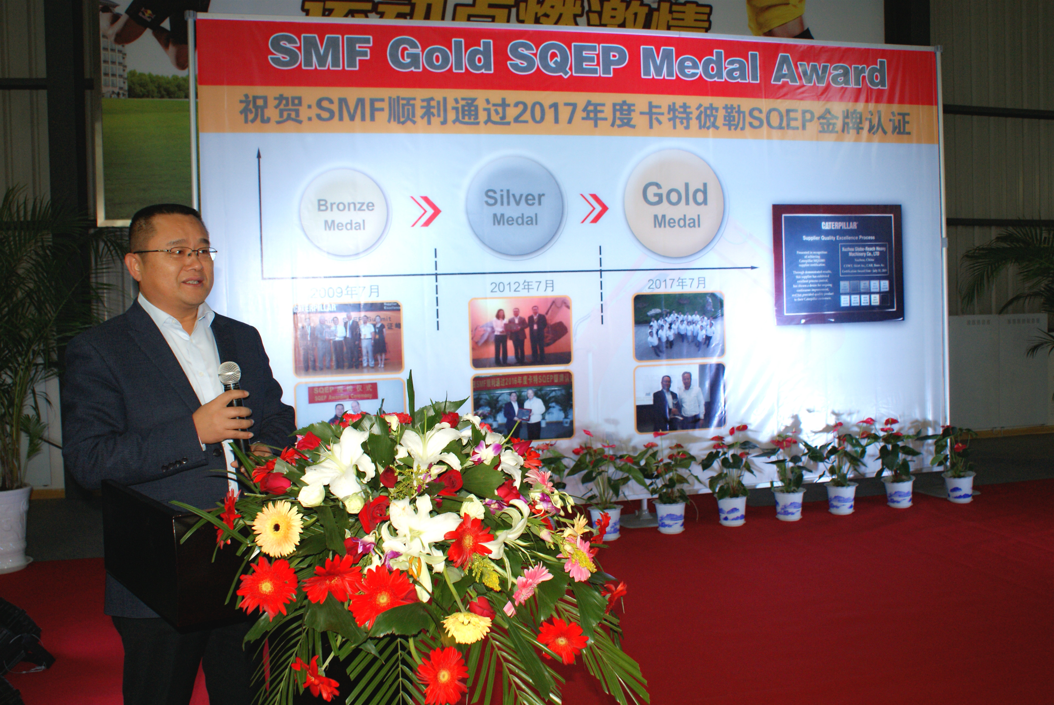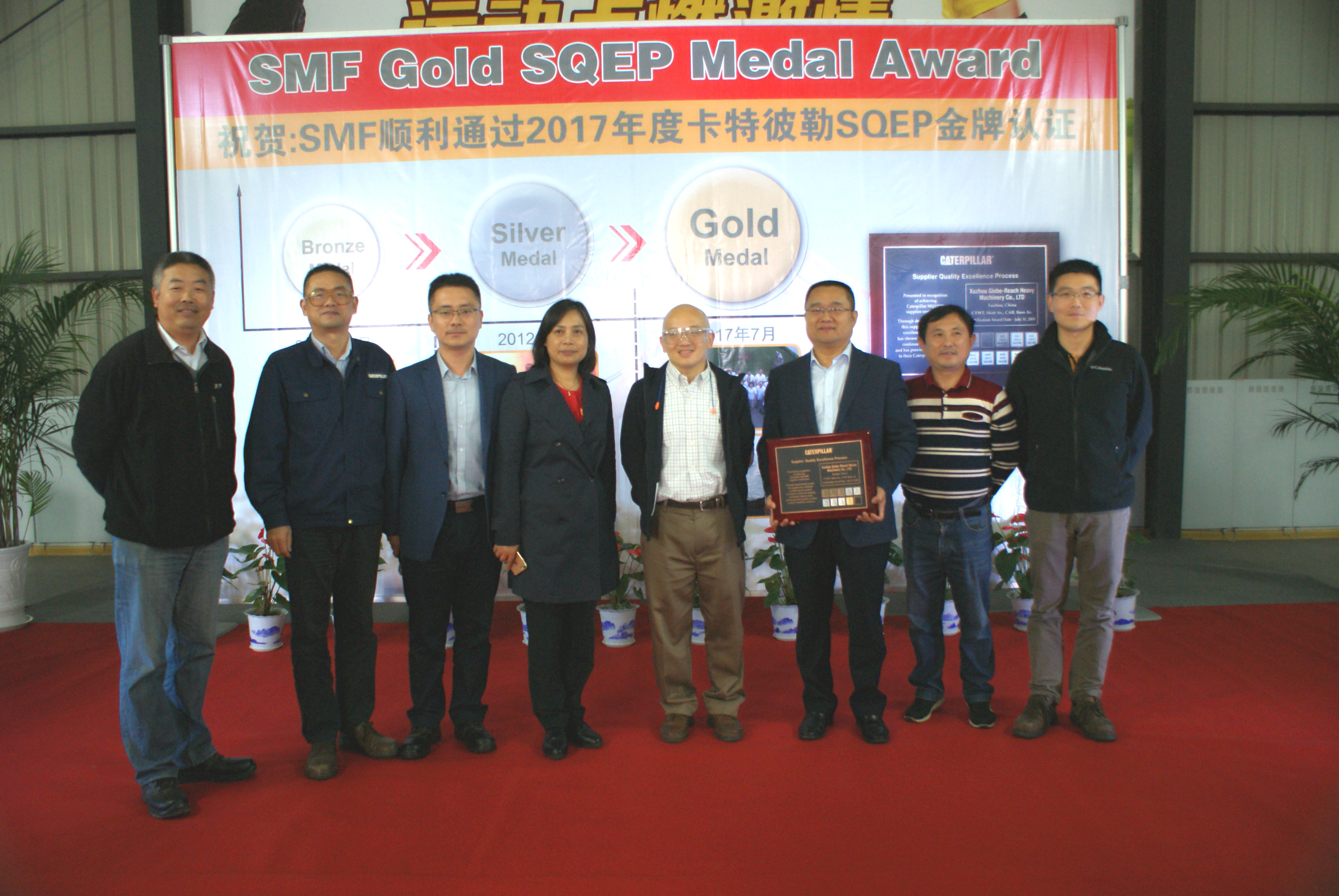 2017年10月12日,SMF在職工活動中心隆重舉辦卡特彼勒SQEP金牌供應(yīng)商授牌儀式,卡特彼勒全球采購部亞太區(qū)采購經(jīng)理李志鋒一行來我司進行授牌,現(xiàn)場氣氛十分活躍。授牌儀式由副總經(jīng)理李總主持,總經(jīng)理薛總作重要講話,感謝卡特彼勒對我司的認可與信任,今后我司將再接再厲,用更好的質(zhì)量和服務(wù)回饋客戶,加強與卡特彼勒之間的緊密合作,爭取獲得長足發(fā)展。李志鋒先生表示對我司寄予厚望,希望我司能在結(jié)構(gòu)件制造領(lǐng)域邁上一個新的臺階。